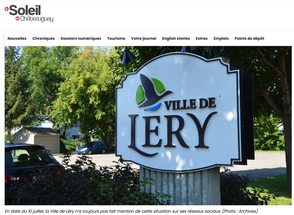 As of July 10, the City of Léry has yet to mention this situation on its social media platforms.